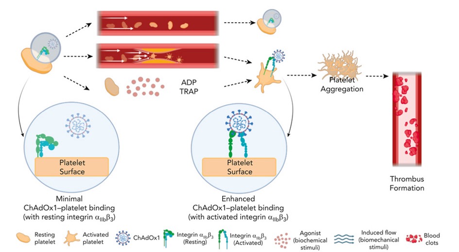 We explore how adenoviral vectors such as ChAdOx1 interact with platelet and vascular integrins under mechanical forces, contributing to rare thrombotic complications.