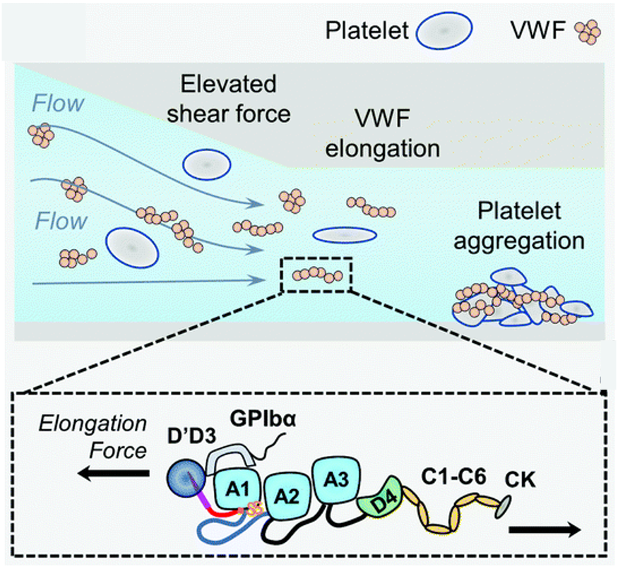 We investigate how mechanical forces regulate thrombus formation at the molecular, cellular, and vascular scales, with a focus on force-sensitive pathways that initiate and amplify pathological clotting. We study how biomechanical forces in blood flow regulate the structure and function of von Willebrand factor (VWF), a key mechano-responsive protein in hemostasis and thrombosis.