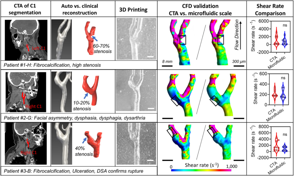 Detailed 3D reconstruction and fabrication of patient-specific carotid artery vessel geometries.